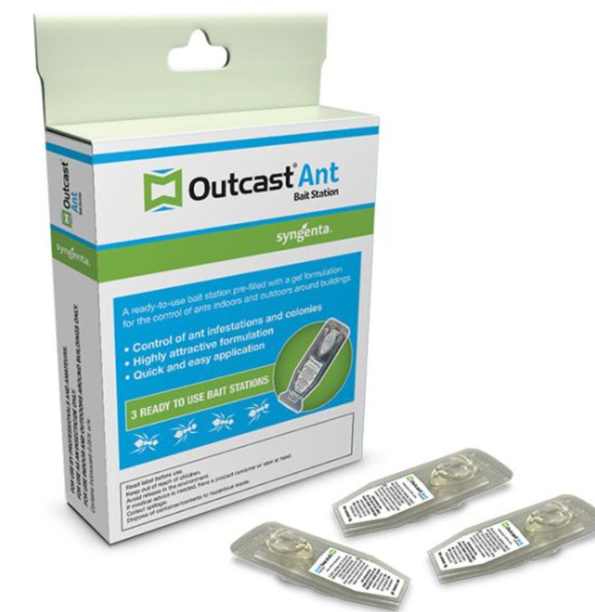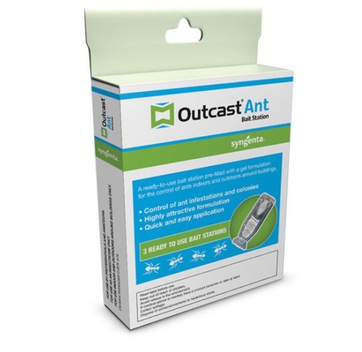 This leads to complete control of the colony and ant infestation. The use of Outcast® Ant Bait Station will help eliminate ants within days of applying the gel according to label directions.